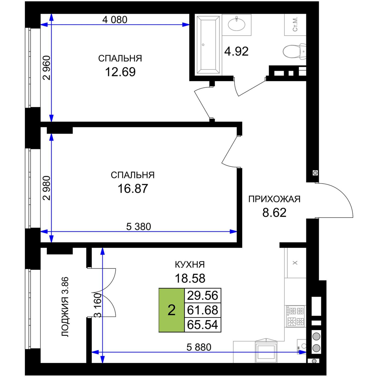 Продам двухкомнатную квартиру в новостройке 74.5 м.кв.
