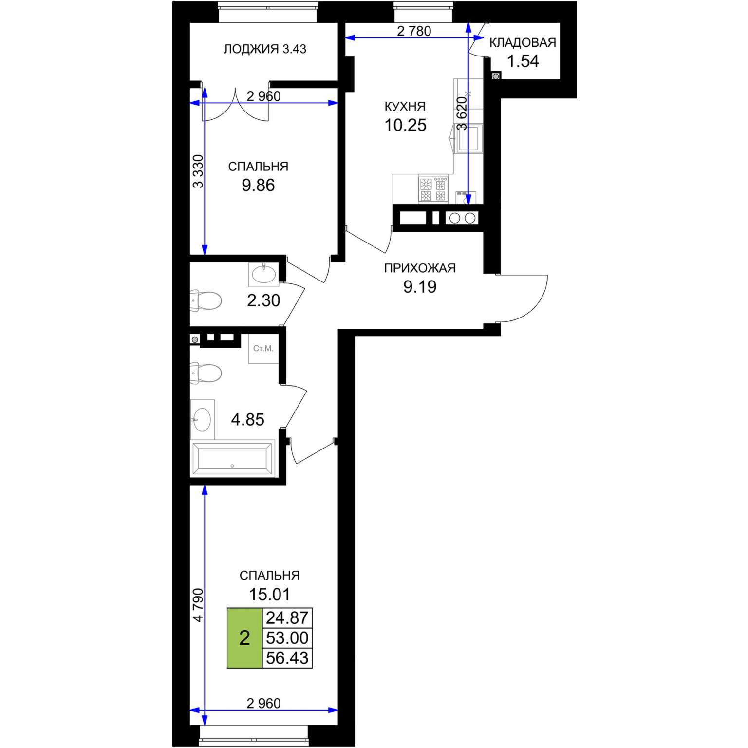 Продам двухкомнатную квартиру в новостройке 61.5 м.кв.