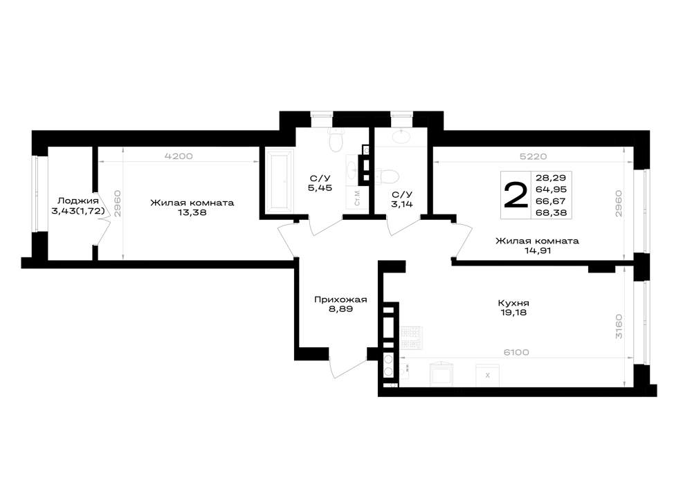 Продается 2-комн. квартира, площадью 66.67 м2 в монолитно-кирпичной новостройке. Возможен вариант покупки с использованием ипотечных средств, есть рассрочка, возможна покупка с использованием материнского капитала, есть военная ипотека.