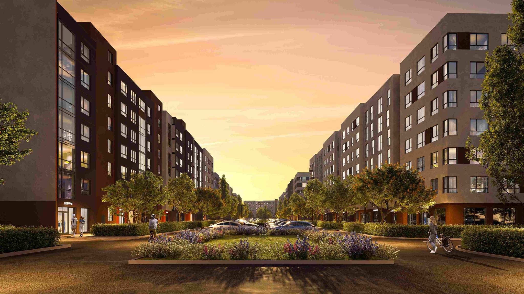 Парковка автомобилей - наземная. Инфраструктура: спортивные площадки, места для отдыха, супермаркет, коммерческие объекты.