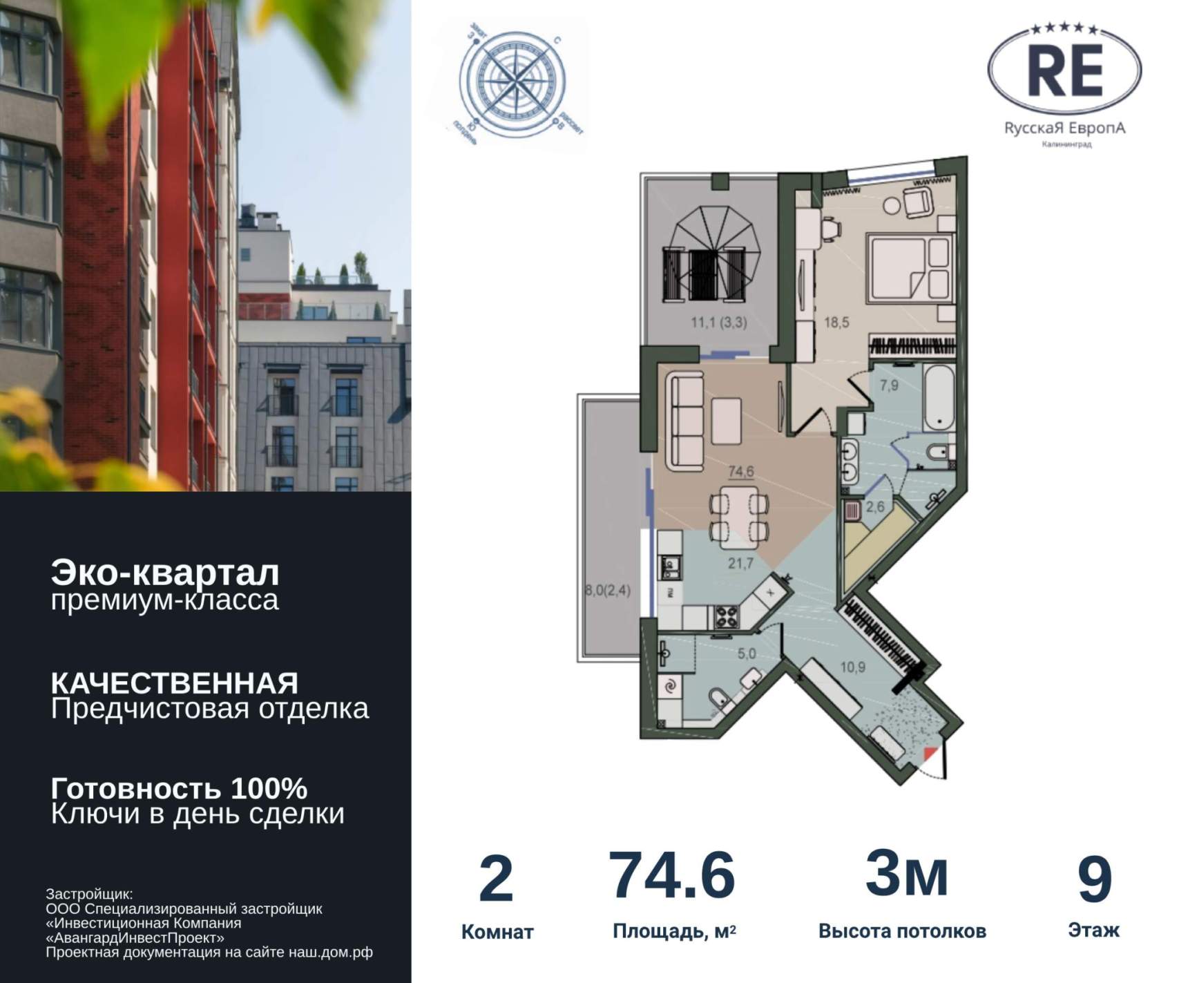 Продажа двухкомнатной квартиры в новостройке в Гурьевске от собственника