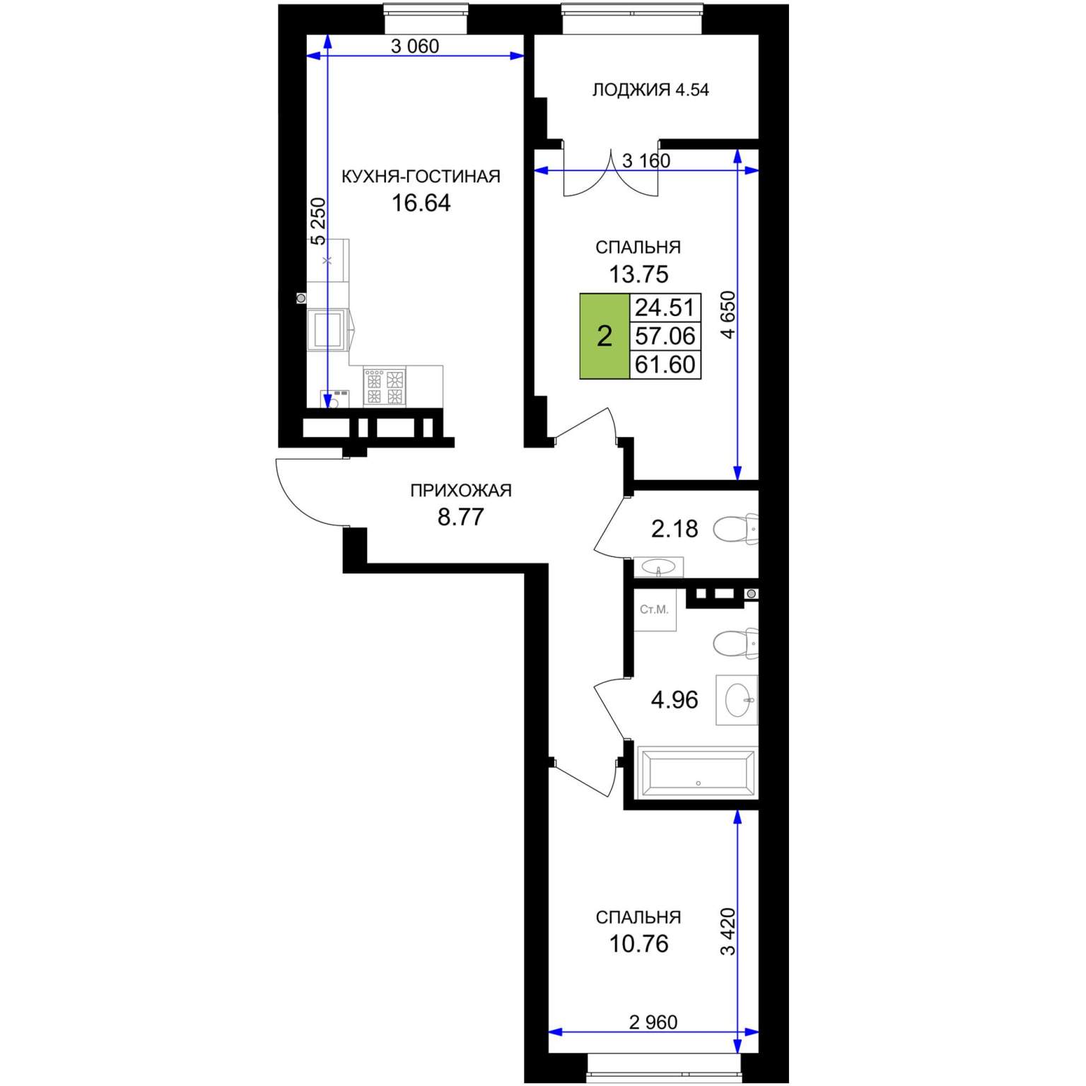 60.6 м2