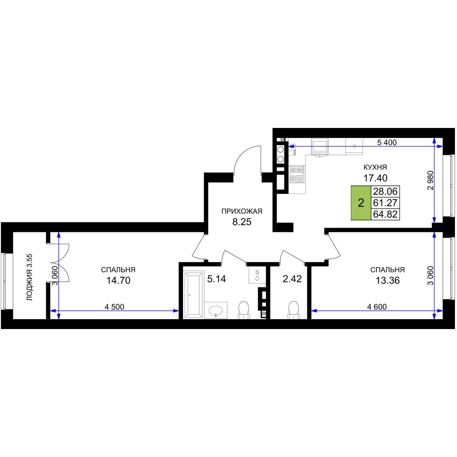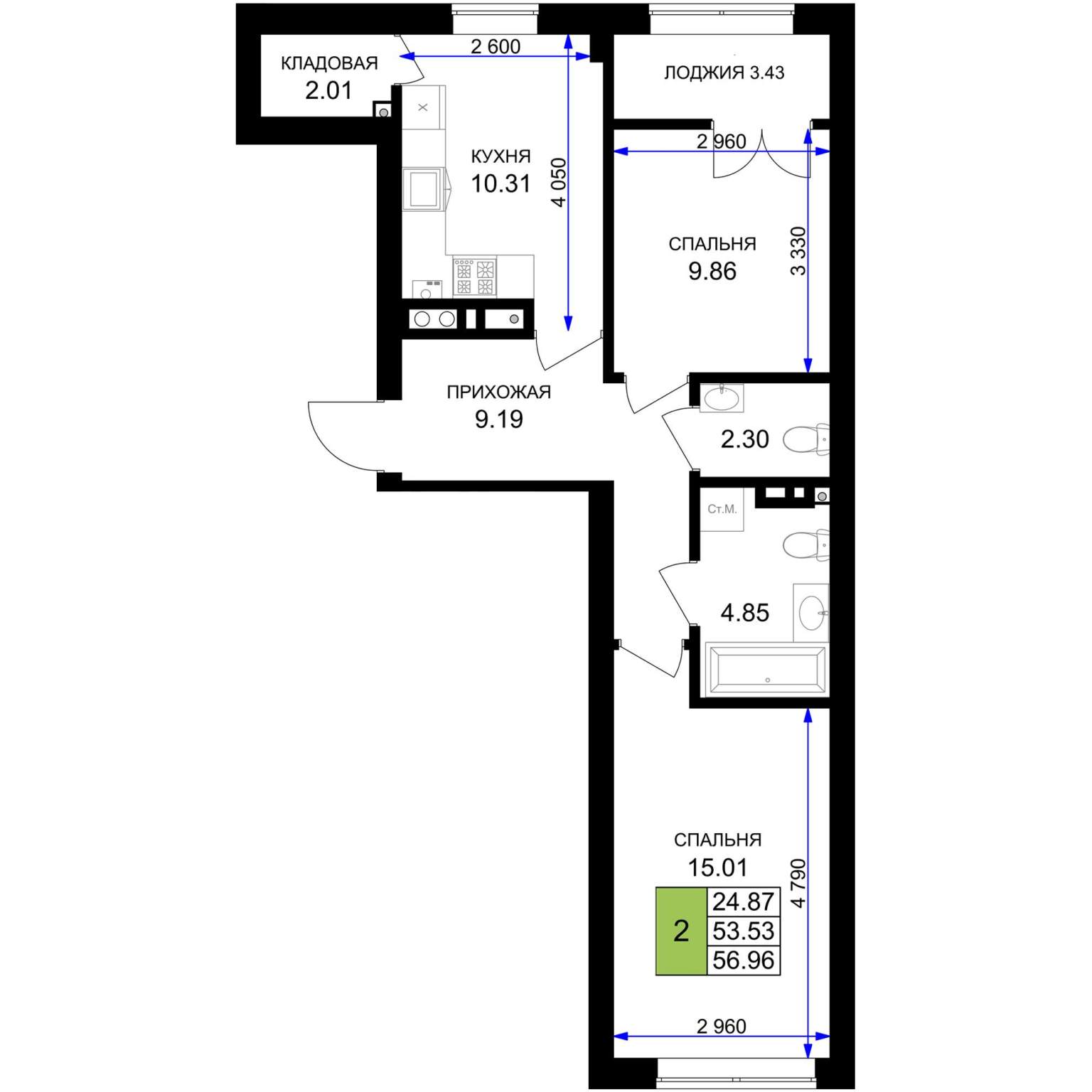 55.3 м2