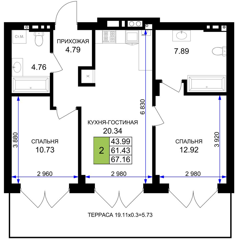 67.2 м2