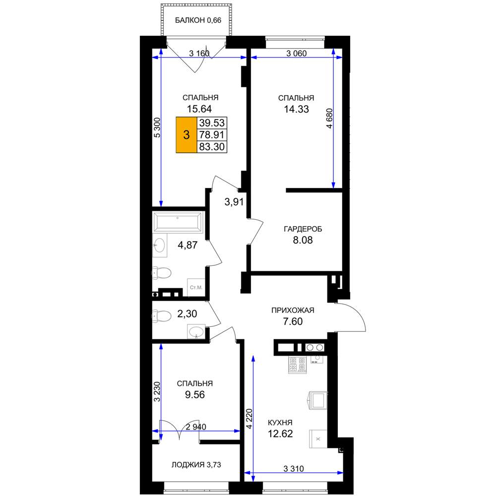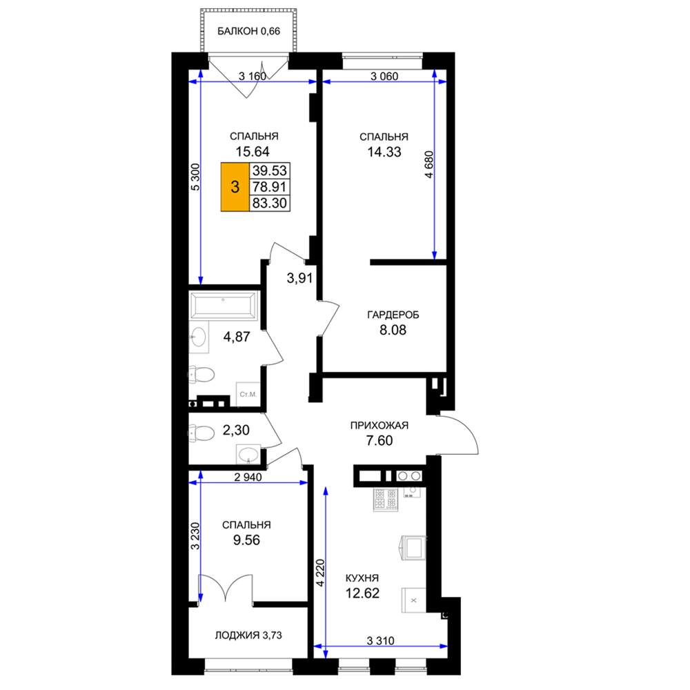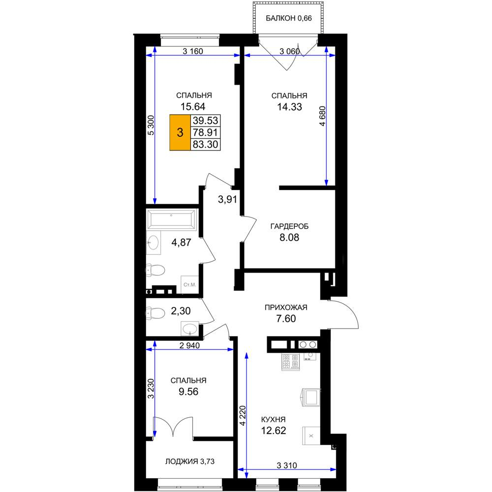 Продам трехкомнатную квартиру в новостройке 94.5 м.кв.