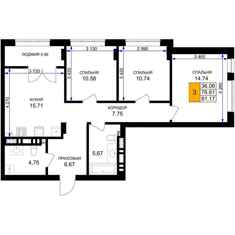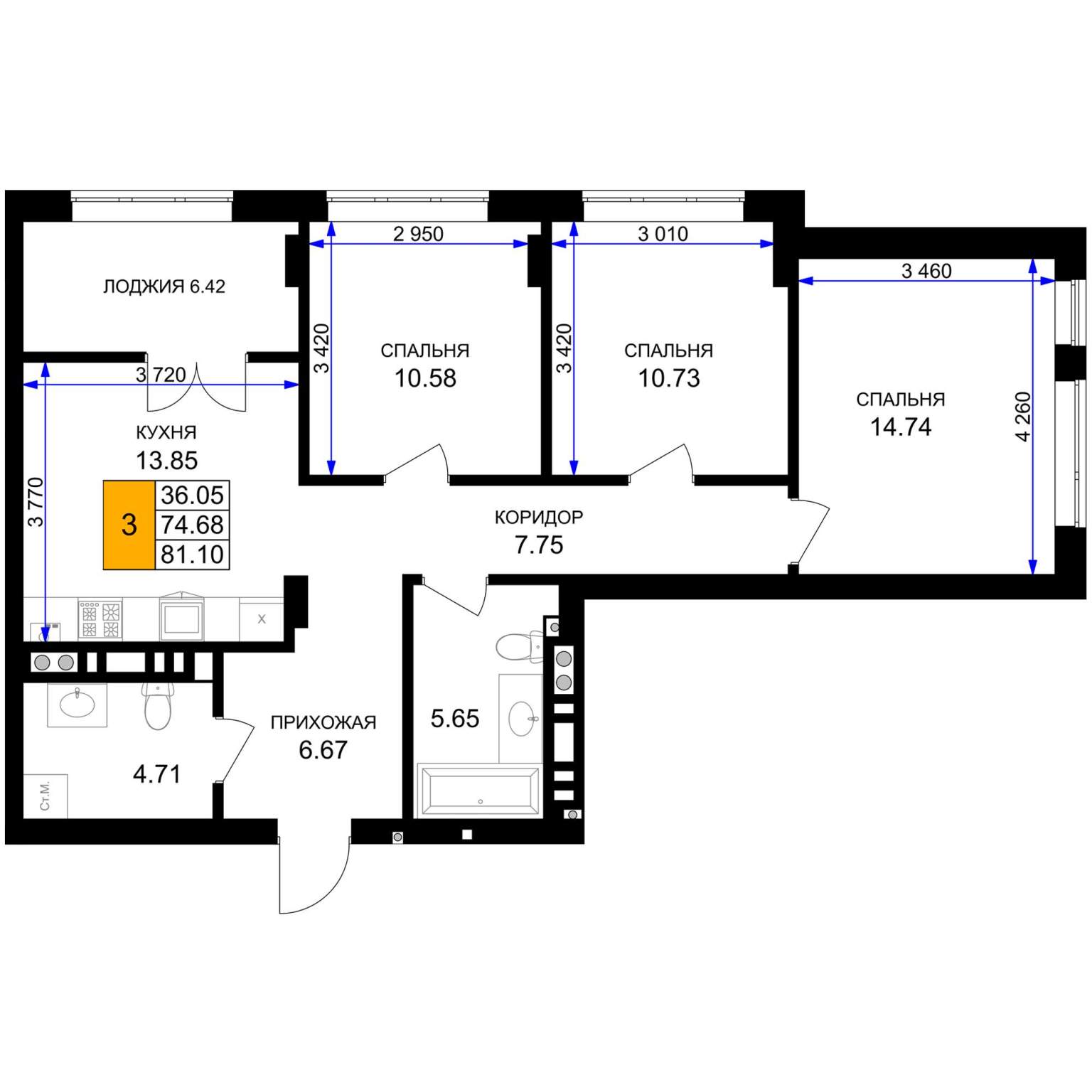Продажа трехкомнатных квартир в новостройках в Гурьевске