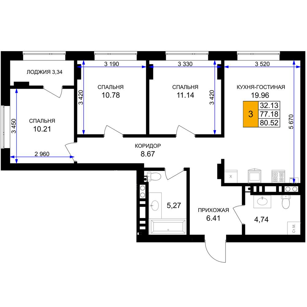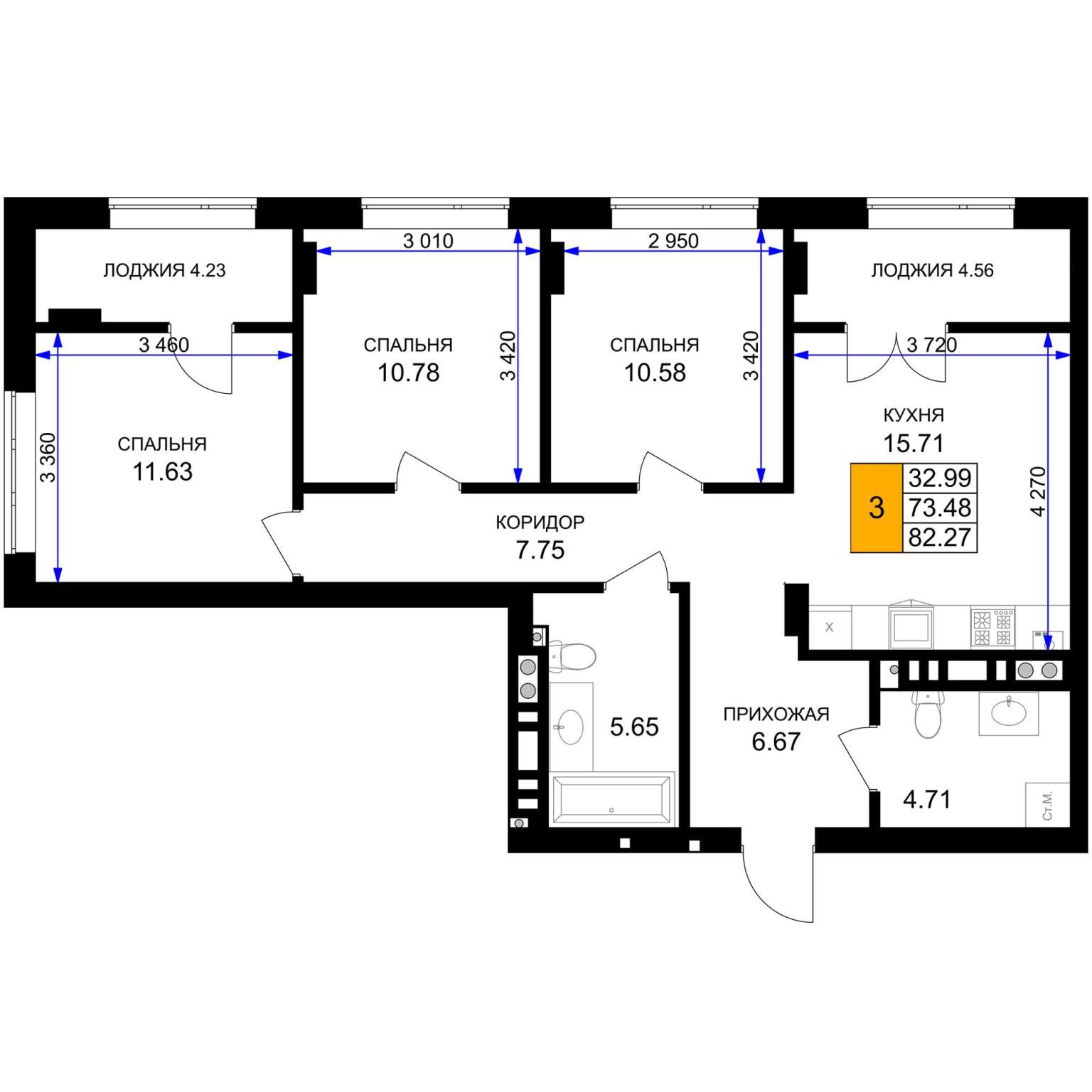 Продажа трехкомнатных квартир в новостройках в Гурьевске
