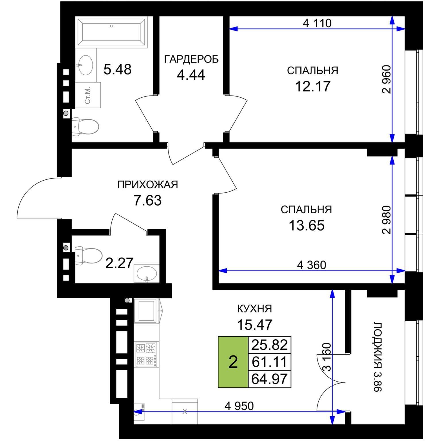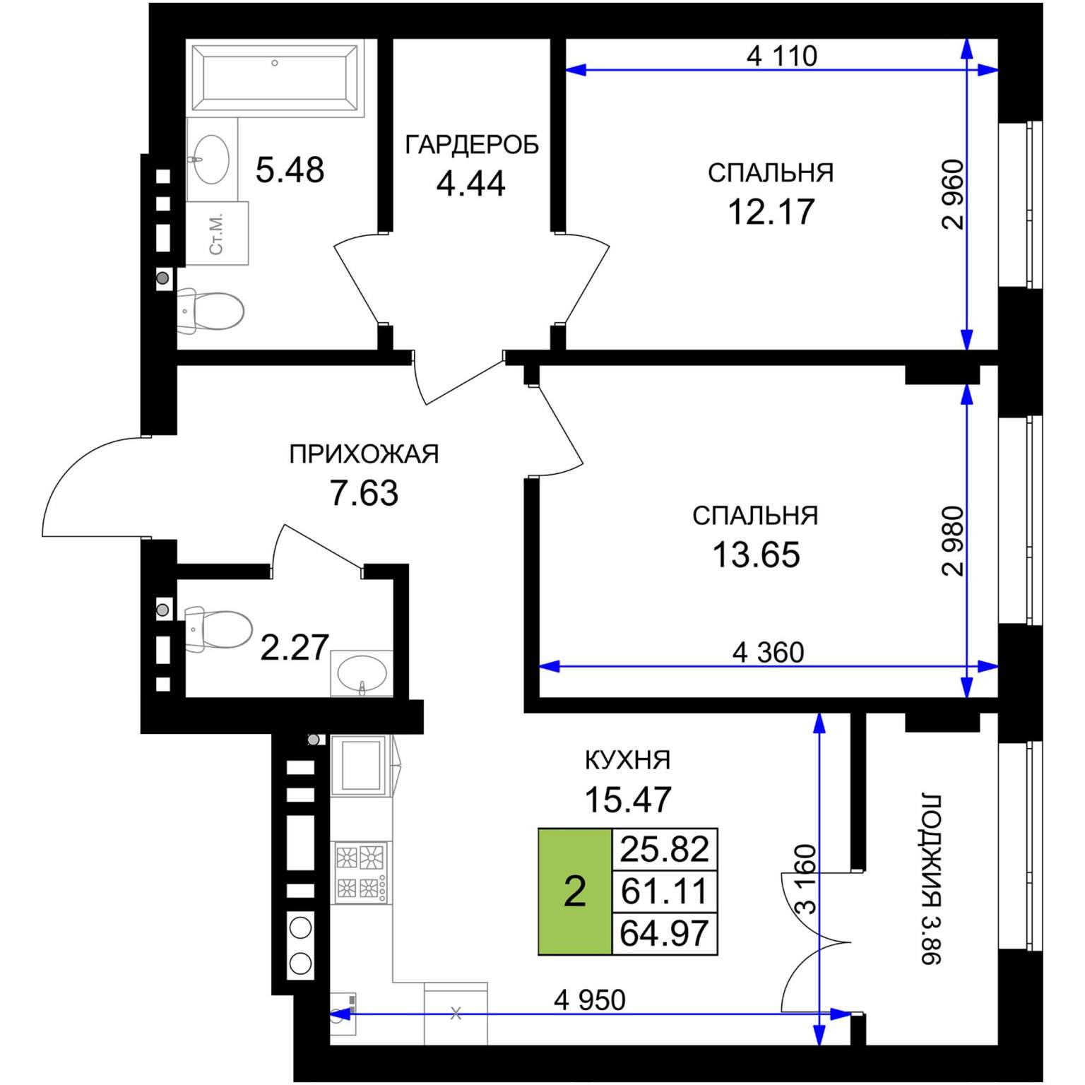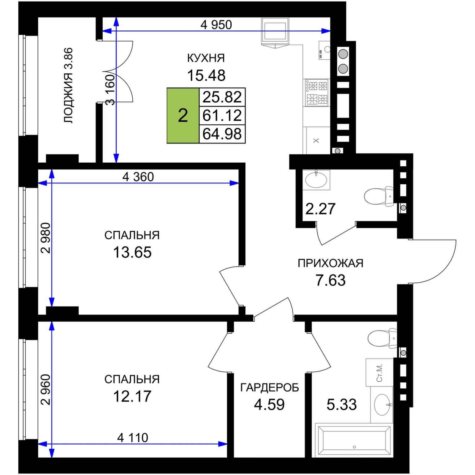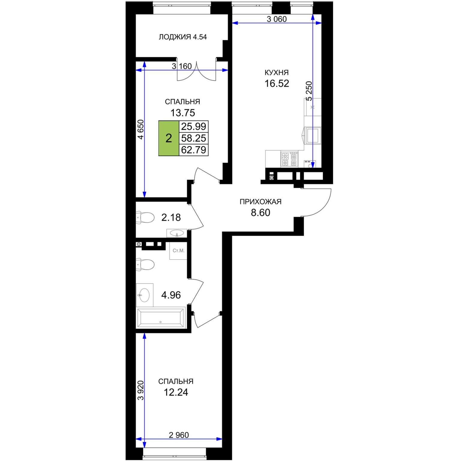 60.5 м2