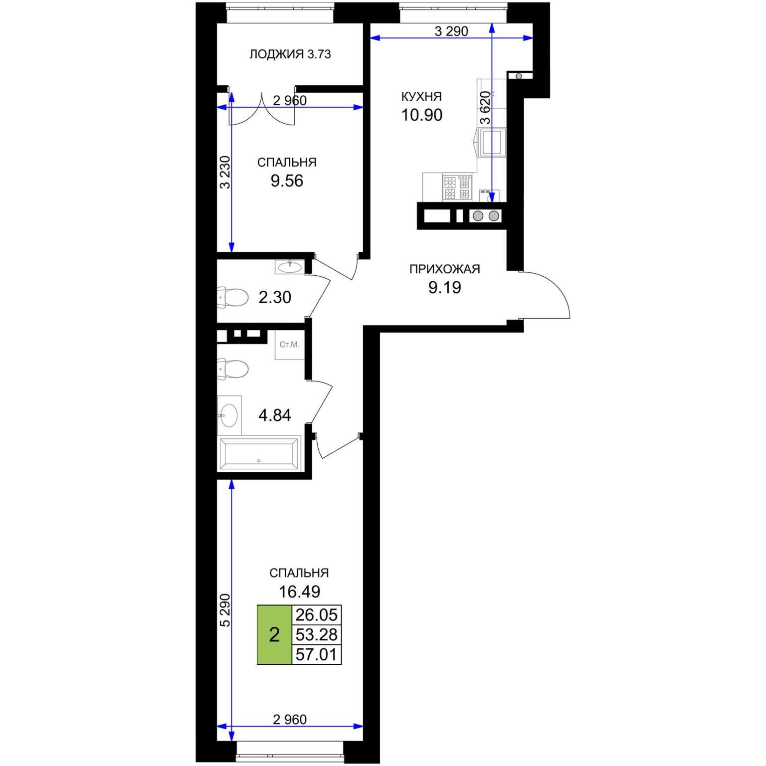 56.5 м2