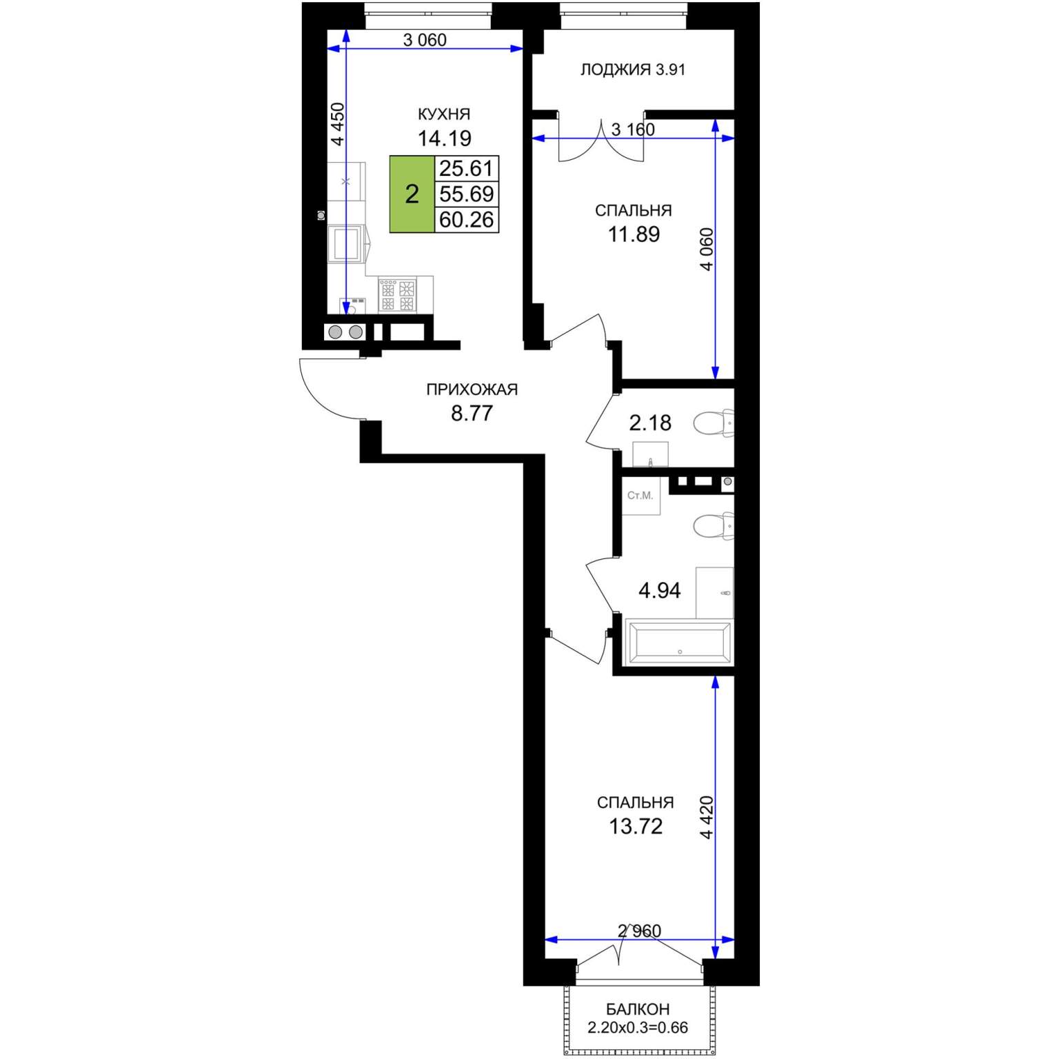 60.1 м2