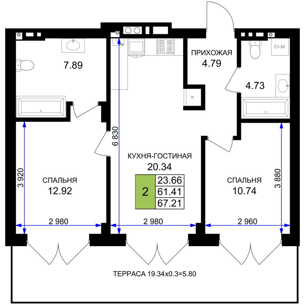 67.2 м2