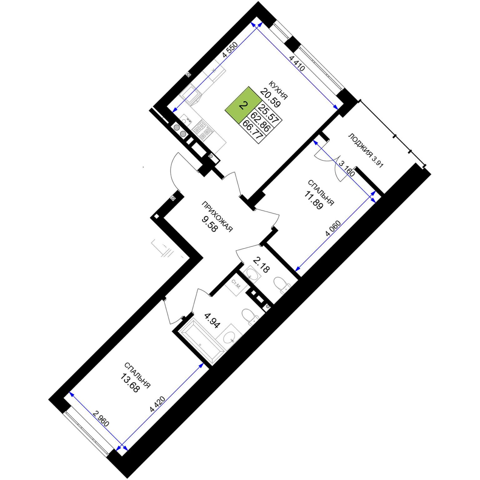 66.7 м2