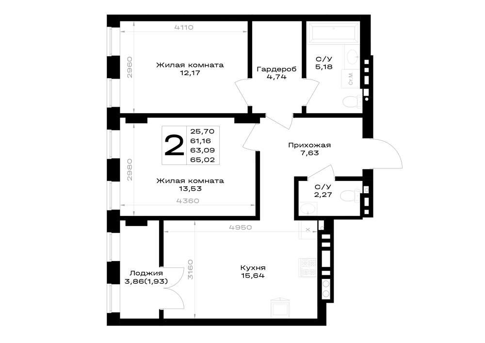 60.5 м2