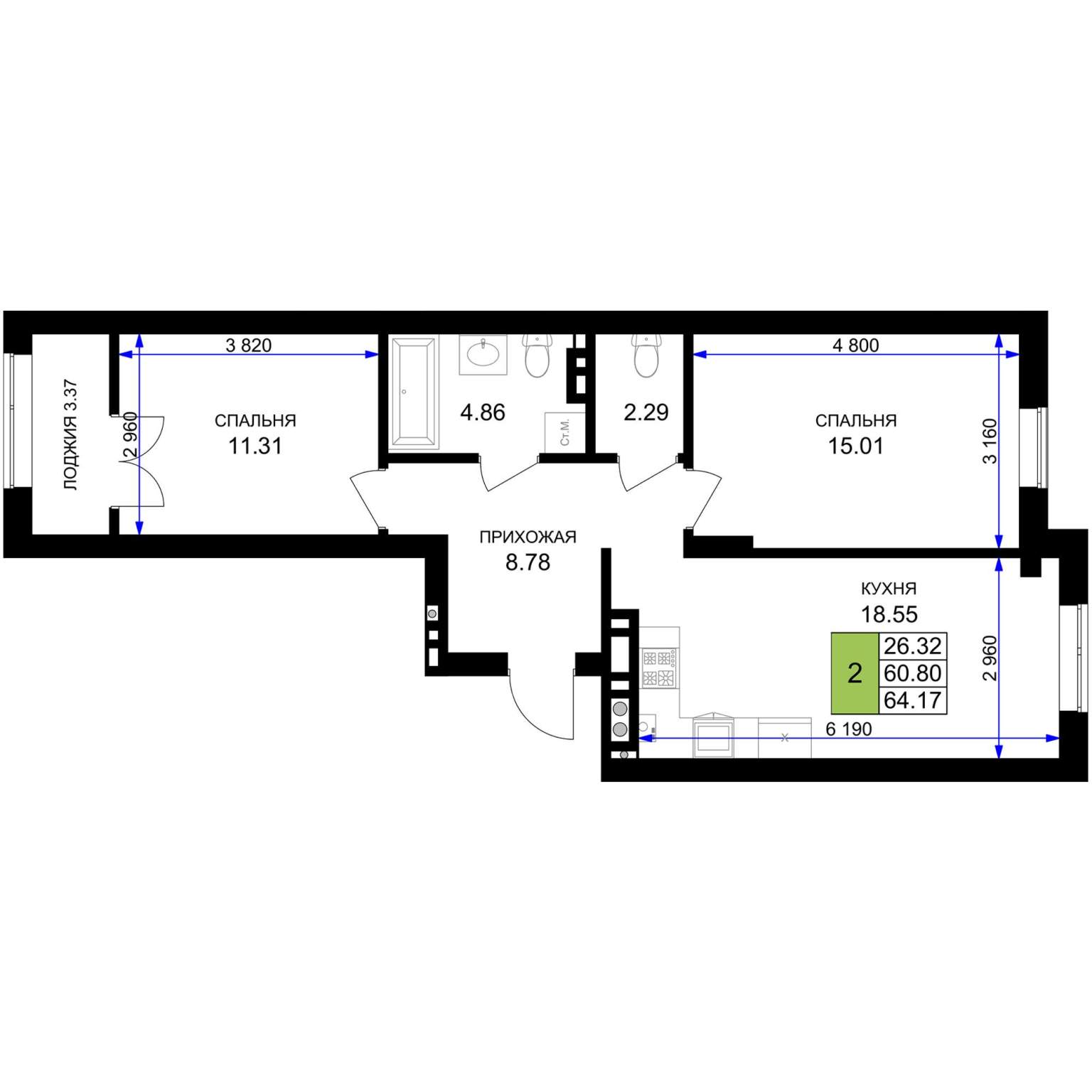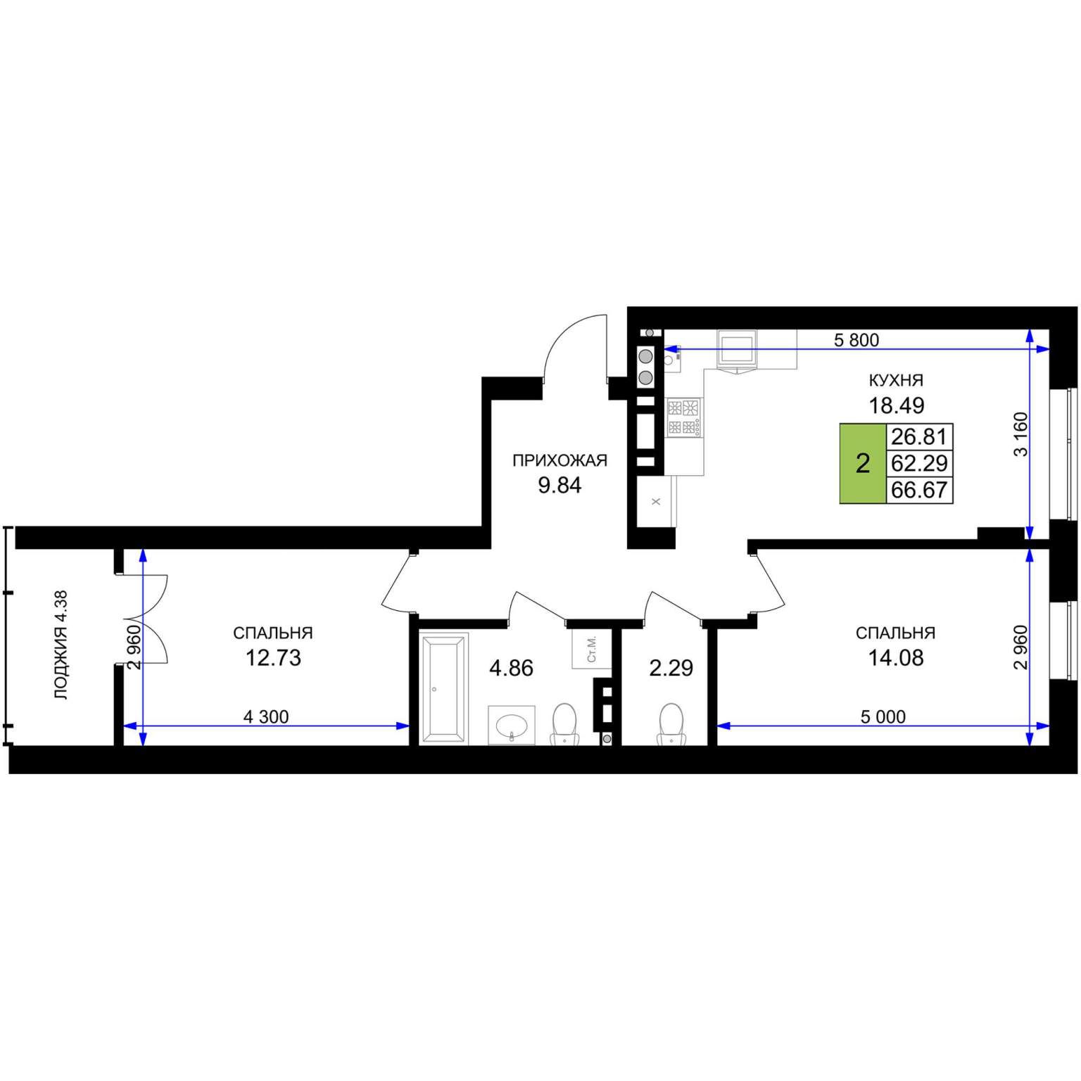 56.3 м2