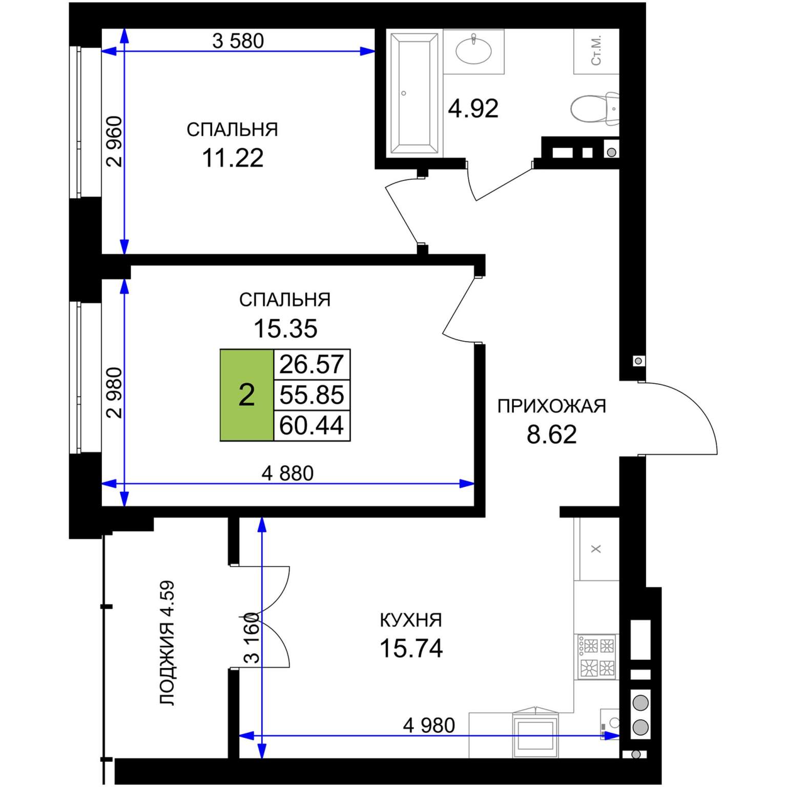 56.5 м2