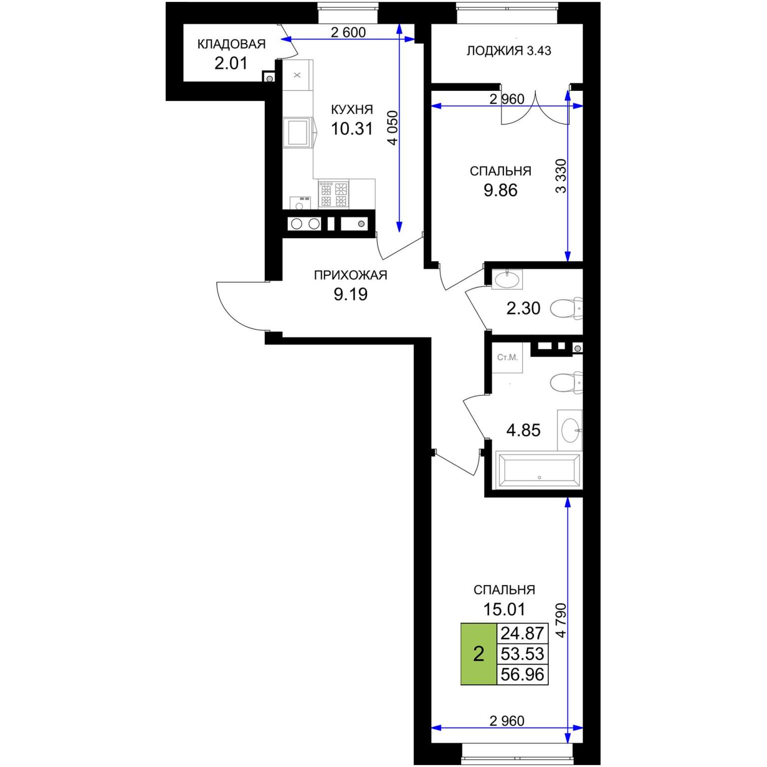 55.3 м2